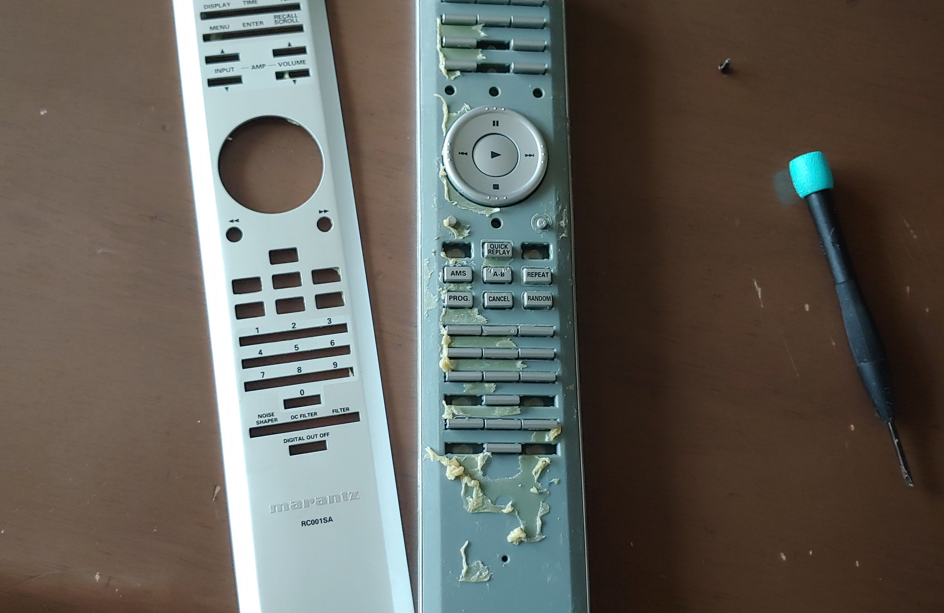 본드에 심하게 붙은 세개 버튼은